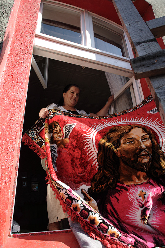 Procesja Bożego Ciała w Lipinach. Przygotowanie Ołtarza w oknie. 2009r.