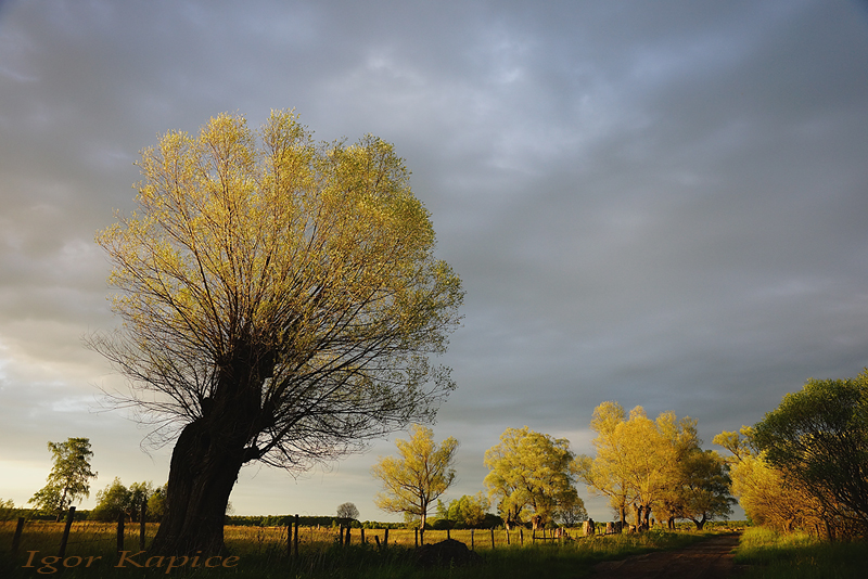 Kapice - wiejska droga w wieczornym świetle