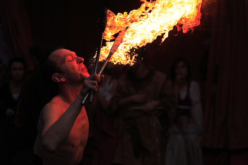 Przedstawienie plenerowe "Kuglarze". Teatr "Gry i ludzie". Katowice Szopienice. Sierpień 2008.