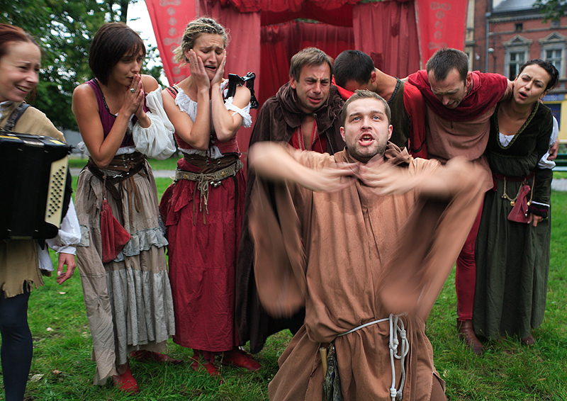 Przedstawienie plenerowe "Kuglarze". Teatr "Gry i ludzie". Katowice Szopienice. Sierpień 2008.