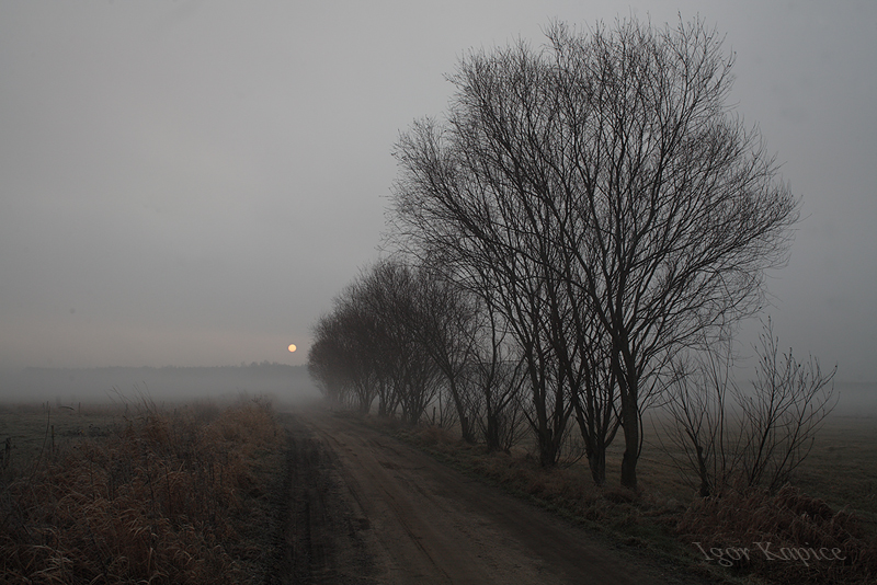 - Bagna biebrzańskie, drogi, Kapice, mglisto, zima,