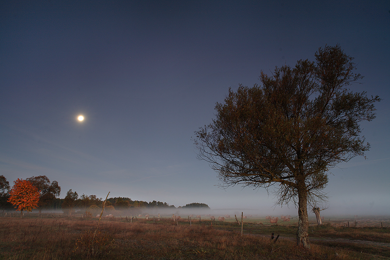 Słońce za aparatem, księżyc przed obiektywem idotego mgła płożąca się po łące, zaiste rozpieszcza mnie tegoroczna jesień.