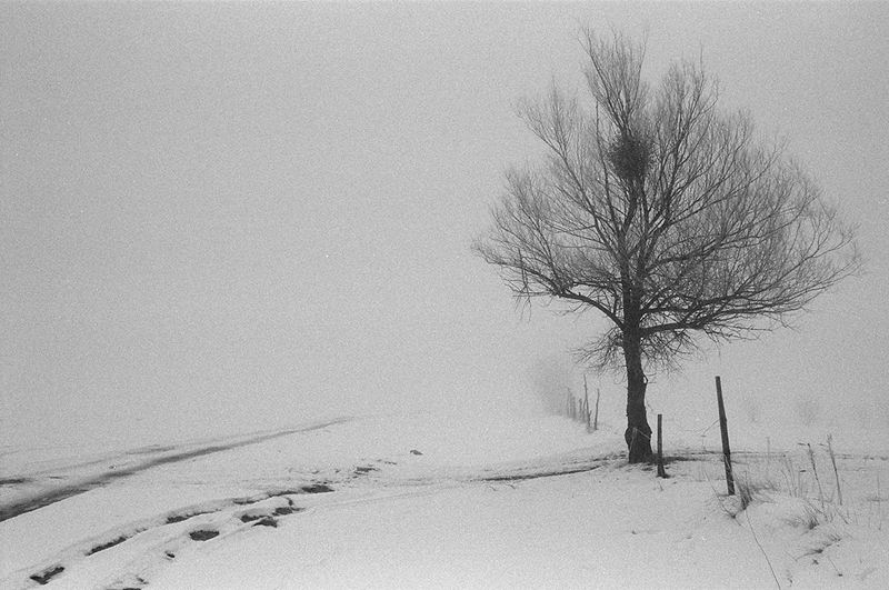 - Bagna biebrzańskie, drogi, Impresje słowem i obrazem tworzone, Kapice, Kodak T-MAX 400 / 135, płoty, zima,