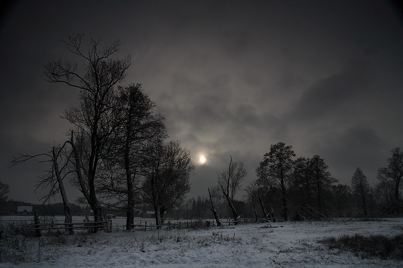 Grudzień 2012,w Kapicach spadł śnieg, po zimowym niebie przesuwają się pastelowe chmury, raz to odsłaniając raz zasłaniając ukrywające się za nimi słońce. Jaskrawości nie ma, raczej pastelowa nostalgia i cisza, wypełniająca przestrzeń nieba i łąk przykrytych śniegiem.