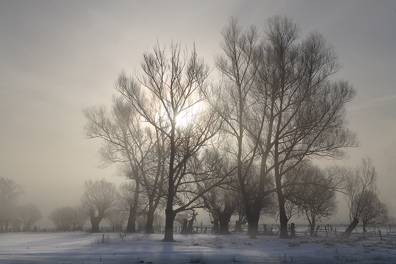 - Bagna biebrzańskie, Kapice, mglisto, wierzby, zima,
