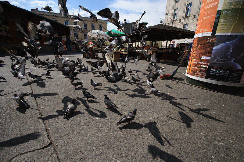 Kazimierz. Kraków. gołębie. Plac Wolnica.