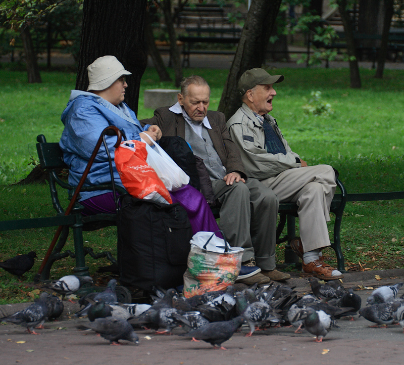 Kraków, planty - Scenka na ławce