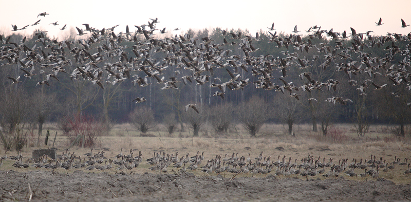 Gęsi malowniczo prezentują się w nadbiebrzańskim pejzażu. To temat wdzięczny, jednak jego atrakcyjność to dla gęsi kłopot. W trakcie objazdu "gęsiowego" obserwowałem próby podchodzenia ich i płoszenia. Nie dało rady powstrzymać podchodzących. Proszę dajcie im odpocząć. Weźcie długogniskowy obiektyw i utrzymujcie bezpieczny dla gęsi dystans, a będzie dobrze.