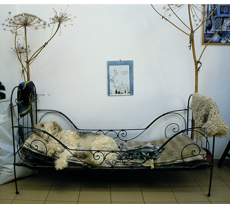 Canon 30, welvia 50, pies Fredów na swoim posłaniu