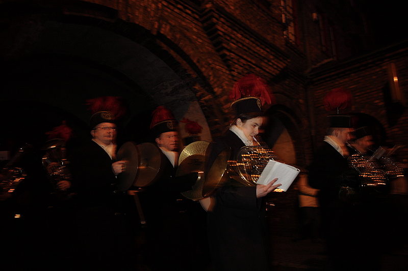 Barbórka. Orkiestra górnicza o poranku. Nikiszowiec.