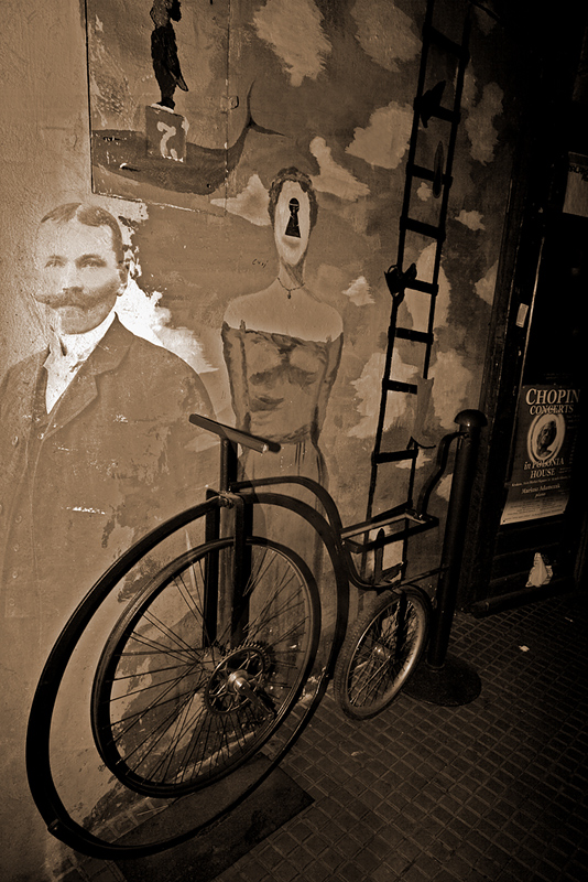 Spotkania z wydarzeniami dawno minionymi i zagubionymi w czasie przypominają trochę odczucia podróżnego wsiadającego do pociągu na stacji teraźniejszości. Zdarza się, że w przedziale, do którego wchodzi podróżny, znajdują się przedmioty pozostawione przez pasażerów już nieobecnych, tych, którzy odeszli już w przeszłość i nigdy już nie powrócą do pociągu życia. Przedmioty te mają magiczną moc, są jak klucz do obrazów wyłaniających się z teatru wyobraźni, stają się rekwizytami w spektaklu skojarzeń, a podróżny jest w tym przedstawieniu widzem, scenografem i reżyserem jednocześnie. Musi tylko z uwagą pochylić się nad starym zdjęciem dżentelmena z wąsem, zatrzymać przy starym bicyklu, postawionym na tle namalowanej na ścianie przy wejściu do krakowskiej kawiarni dekoracji, a potem zestawić w teatrze wyobraźni te dwa zdarzenia i zachwyty. Dalej historia opowiada się już sama, trzeba tylko poddać się jej urokowi i podążać za nią.