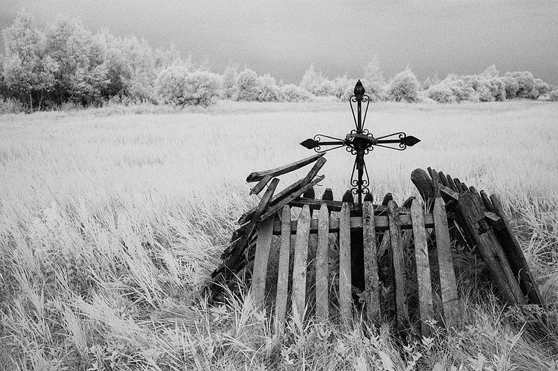 - Bagna biebrzańskie, Chrystus, Dębiec, Hoya filtr Infrared R72, Krzyże, płoty, podczerwień, ROLLEI Infrared 400/36 - film na podczer,