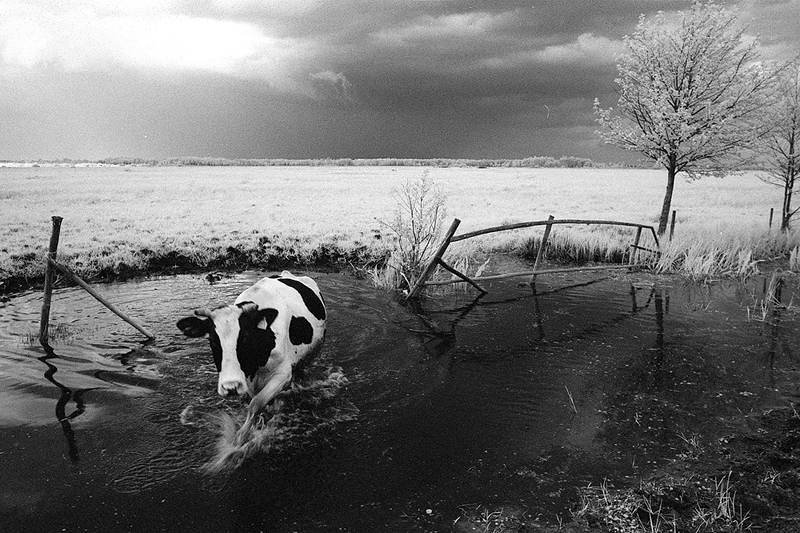 - Bagna biebrzańskie, Biały grąd, Hoya filtr Infrared R72, krowy, podczerwień, ROLLEI Infrared 400/36 - film na podczer,