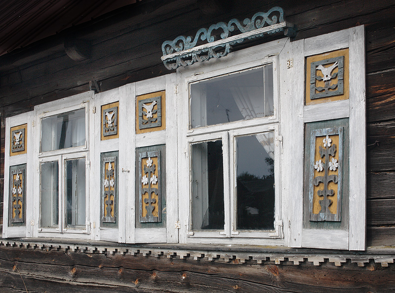 Dom i gzymsy nadokienne oraz resztę zdobień wykonana przez majstra Koronkiewicza z Sarnetek. Ganek już rozebrany.