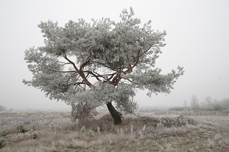 Kapice - listopadowy poranek - szron i drzewo