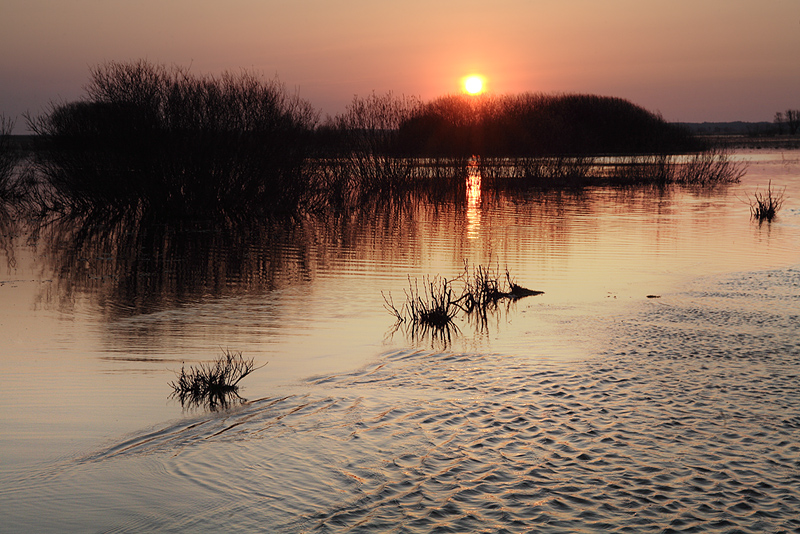 Biały grąd - wschód słońca - wiosenne rozlewiska