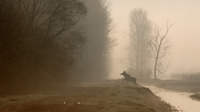 - Bagna biebrzańskie, drogi, mglisto,