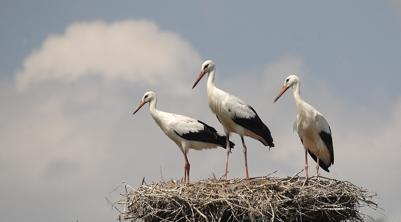 Bocianiuki w gnieździe.