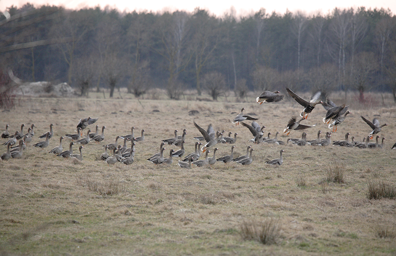 Gęsi malowniczo prezentują się w nadbiebrzańskim pejzażu. To temat wdzięczny, jednak jego atrakcyjność to dla gęsi kłopot. W trakcie objazdu "gęsiowego" obserwowałem próby podchodzenia ich i płoszenia. Nie dało rady powstrzymać podchodzących. Proszę dajcie im odpocząć. Weźcie długogniskowy obiektyw i utrzymujcie bezpieczny dla gęsi dystans, a będzie dobrze.