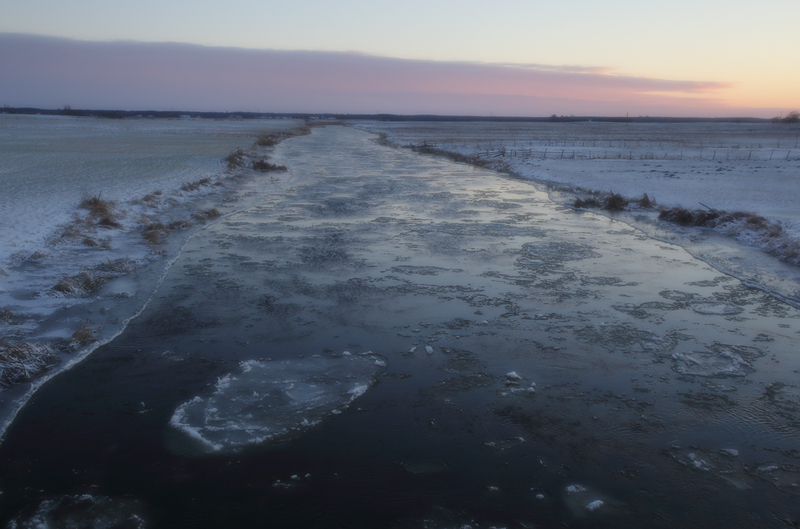 Jest około 20 stopni mrozu. Kanał zamarza, kra jeszcze narazie płynie.