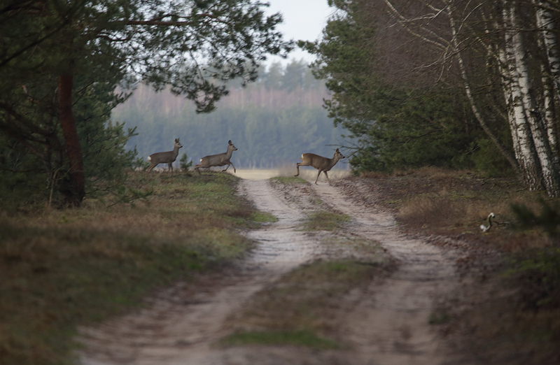Biebrzańskie drogi z sarnami