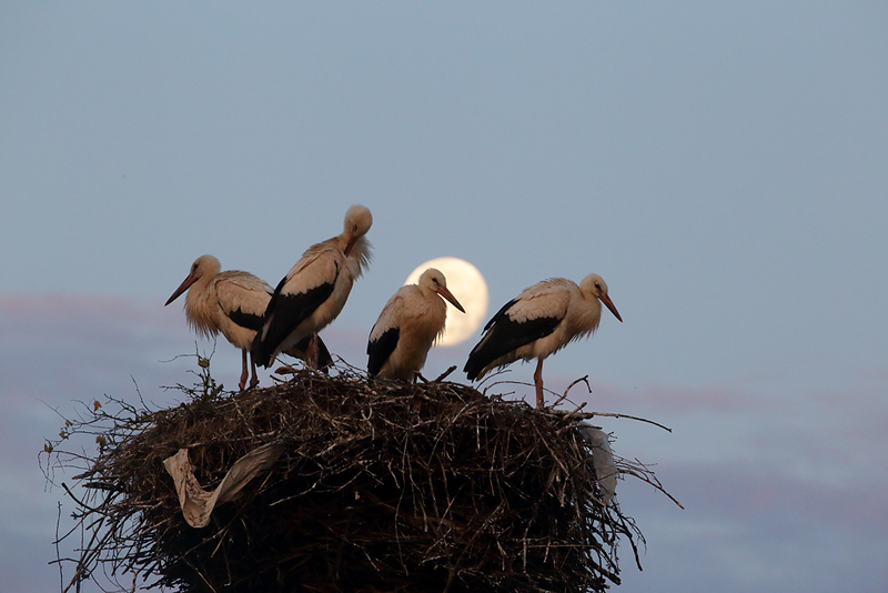 Bociany i księżyc.