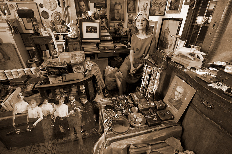 W moim zaczarowanym sklepie są przedmioty, w których mieszkają zaklęte marzenia,uczucia tych, co dawno już odeszli, zostawili po sobie ślad duszy, odbicie w starym zwierciadle, grymas twarzy zastygły na starej fotografii, wspomnienie ukochanej osoby zaklęte w starej broszce, lub pamiątkowej papierośnicy. Po dzieciach pozostał smak landrynek zamknięty w metalowym pudełku pomalowanym w fantazyjne kolorowe wzory. Fajansowe pojemniki na przyprawy przechowują smak i zapach potraw podawanych na porzuconej porcelanowej zastawie. W starej filiżance i leżącej nieopodal fajce, czas zatrzymał myśli i przeczucia starego dżentelmena wspominającego w skupieniu i ciszy obrazy ze swojej minionej młodości. Figurki świętych zachowały ślad po modlitwach i nadziejach,oczekiwaniu na cud, który być może się wydarzył.